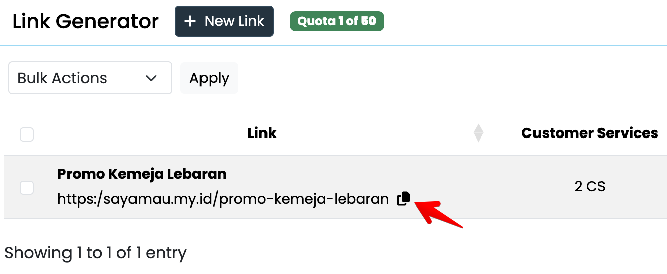 Setelah selesai, kamu dapat membagikan link yang telah dibuat dengan cara klik **Icon Copy / Salin** pada link yang telah dibuat
